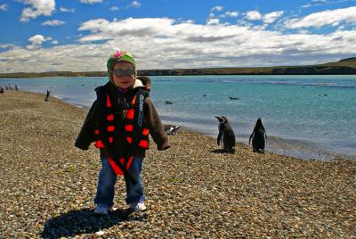 Also weiter zur Caleta Valdes, zu den See-Elefanten. Wir wollten endlich auch die Männchen sehen und Voilà, da lagen sie. Das sind dann schon ganz dicke, träge Dinger, diese Riesenkolosse, die da am Strand herumgelegen sind. Leider nur gelegen, keiner hat gekämpft und sein Harem verteidigt. Auf dem Rückweg haben wir dann noch bei den Pinguinen vorbeigeschaut. Da waren nicht so viele (die gibt’s dafür weiter südlich zu Hauf), aber für eine staunende und begeisterte Nika hats allemal gereicht.